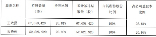 目前,控股股东王致勤和宋艳俊分别持有公司26.81%和20.93%的股份,二人所持股份已全部被冻结。请公司向控股股东核实截至目前股权冻结事项的进展情况,是否可能对公司控制权稳定性产生影响。