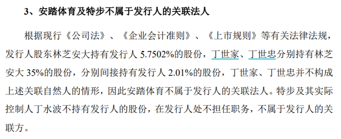 但另一方面,林芝安大的实际控制人是丁世家,而丁世忠显然又是丁世家的一致行动人,二人拥有林芝安大70%的份额,对林芝安大拥有绝对的控制权;而林芝安大拥有舒华体育5%以上股份,并是舒华体育第二大股东。丁世忠、丁世家二人实际控制林芝安大,是舒华体育的关联方,在此背景下,从实质重于形式原则出发,二人是否应当认定为舒华体育的关联方?对此,舒华体育并未接受记者采访。