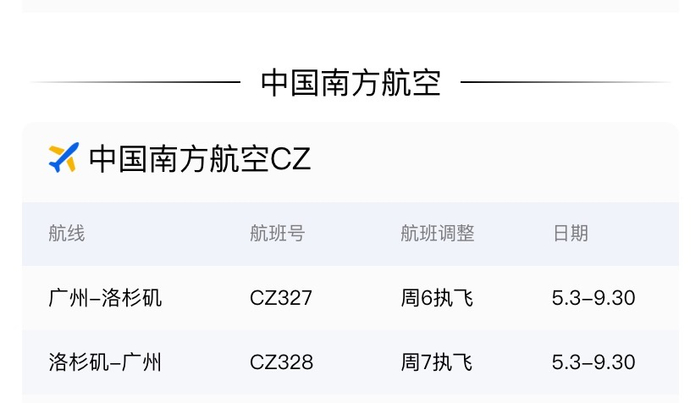 南航的广州-洛杉矶航线、厦门航空的厦门-洛杉矶航线适用日期则到9月30号。在这两个日期之前,四家航空公司执飞的中美航班时刻表不会发生调整。