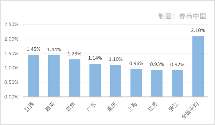 同时,浙江、重庆等地区资产质量较为优质,不良率仍维持在相当的低位,与上季度一致,未有上升。其中,浙江不良率仅为0.92%,但由于银行业较为发达,不良贷款规模相对较大,维持在1253.12亿元。重庆不良率为1.10%,低于全国平均水平。
