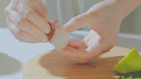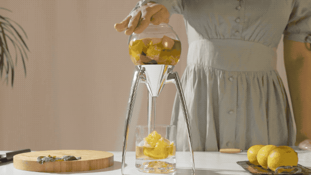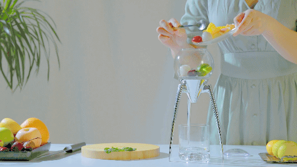 一压:搅拌果肉,充分融合,轻按顶部出水