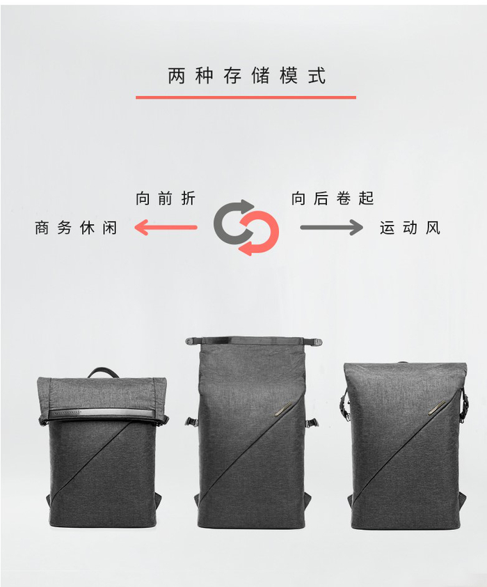 而这款双肩包可以通过简单折叠,轻松切换多种风格:商务、运动风都能轻松hold 住,「反正都有型」。
