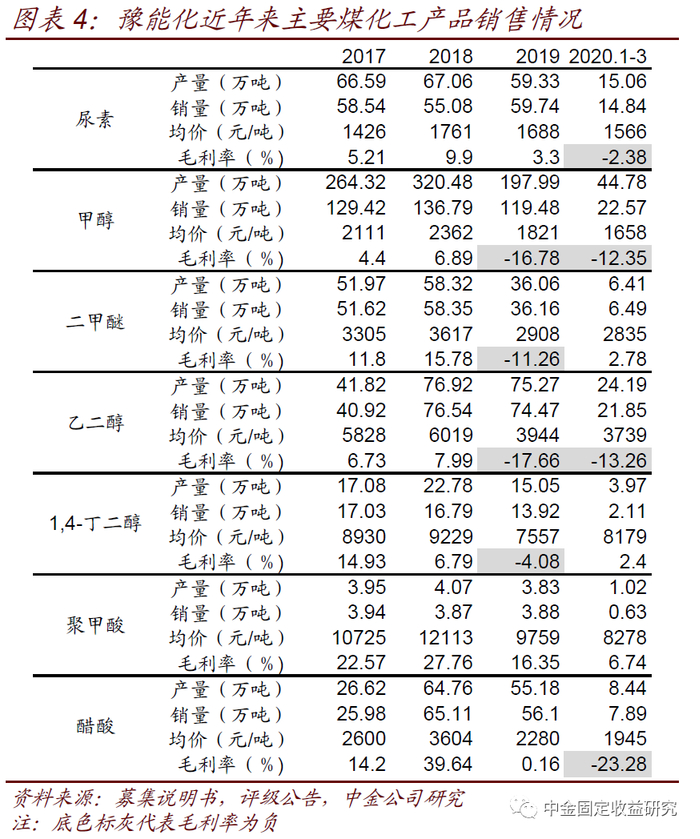 豫能化:豫能化为河南规模最大的省级煤炭,在当地重要性较高,不过化工板块经营压力较大、归母净利润持续亏损,还参股了永续债展期的郑煤,债券市场再融资难度有所上升。河南能源化工集团有限公司(“豫能化”)是河南省规模最大的省级煤炭企业集团,由河南省国资委全资持股。下属河南大有能源股份有限公司为A股上市公司,豫能化通过义马煤业直接或间接持股86.48%(已质押股份占所持股份的48.78%)。2019年煤炭、化工、物贸对公司主营业务收入的贡献分别为18%、15%和58%,对毛利润的贡献分别为87%、-4%和3%。其中煤炭板块,公司截至2020年3月末在产矿井可采储量为44.19亿吨,在产矿井核定产能8,034万吨/年(省内核定产能占比66%),2019年原煤产量8066万吨。绝大多数在产矿井为井工矿井,其中河南省内大部分煤矿由于生产时间长,开采深度在600米以上的煤矿占50%左右,地质条件较为复杂,2018年以来安全生产事故增多,面临一定安全生产压力。煤化工是公司重点打造的煤炭下游产业,目前产品在河南省市场占有率已接近3/4,主要包括尿素、甲醇、二甲醚、乙二醇、1,4-丁二醇、聚甲酸和醋酸。2019年以来受下游需求持续萎缩及石油价格下挫影响,主要煤化工产品销售均价出现大幅下降,部分产品成本倒挂严重,公司甲醇、乙二醇2019年和2020年一度毛利率均为负。随着公司煤化工板块经营压力加大,公司关停了部分生产线以减少亏损。贸易业务方面,主要是为上海宝钢等合作企业提供钢材、煤炭、矿石等,原材料主要为外部采购,公司仅从中赚取差价,毛利率水平较低。除了业务层面的压力之外,公司拥有在职员工超过20万人、人员负担也较重,进一步侵蚀盈利空间。豫能化为市场诟病较多的瑕疵还包括归母净利润长期亏损严重,与母公司持股比例高的子公司(特别是煤化工企业)亏损较多、而少数股东持股比例高的子公司盈利情况较好有关。公司应付票据规模较大,这也是支撑历史盈利变现效率的原因之一,2020年3月末应付票据达到278亿元,考虑票据后的净短债规模达到901亿元,流动性压力较大。由于市场态度趋于谨慎,企业债券市场再融资难度上升,不利于资金滚续。公司还参股了同属河南省级煤企郑煤30.47%股权,而郑煤永续债不行使赎回权可能对公司也有一定负面影响。好在公司在当地的重要性较高,在资源获取、协调金融机构实施债转股等方面得到了河南省政府较多支持,截至2020年3月末已收到债转股资金170.01亿元。