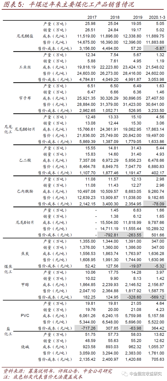 平煤:平煤为河南省内第二大煤炭企业,煤炭板块主要生产矿井服务年限较长、安全生产和成本压力较大,非煤业务占比很高,化工板块主要产品价格承压,此外归母净利润持续亏损,盈利变现效率较低,财务杠杆水平高。中国平煤神马能源化工集团有限责任公司(“平煤”)为河南省内第二大煤炭企业。旗下拥有平顶山天安煤业股份有限公司(“天安煤业”)、神马股份和易成新能3个上市平台,截至2020年3月末质押股份占所持股份的比例分别为49.94%、49.99%和50%,均已达到或接近国企股权质押上限。2019年煤炭、化工、尼龙、贸易业务对公司营业收入的贡献分别为14%、13%、6%和54%,对毛利润的贡献分别为32%、36%、9%和5%,非煤业务占比很高。煤炭产品以炼焦精煤和动力煤为主,截至2020年3月末拥有煤炭资源储量21.52亿吨,剩余可采储量10.91亿吨,在产矿井核定产能为3642万吨/年,2019年原煤产量3303万吨。主要生产矿井服务年限较长,平均开采深度在400米左右,部分矿井开采深度已超1000米。而且由于瓦斯突出,主要矿井按照70元/吨计提安全费用,降低成本难度较大。化工业务涉及盐化工、煤焦化工和尼龙化工,尼龙化工方面公司为国内尼龙66工业丝和帘子布龙头企业,焦化产业主要产品为焦炭和甲醇,盐化工主要产品为PVC、烧碱,2019年以来多数产品价格承压,部分甚至已经出现售价与成本倒挂。贸易业务规模较大,但盈利能力弱,而且管理能力有待进一步规范化。另外需要关注到的是,与豫能化相似,公司归母净利润也面临持续亏损。除此之外盈利变现效率一直较低,考虑应付票据后实际变现效率更弱,加上投资净流出增长,2018年和2019年都存在自由现金流缺口。截至2020年3月末公司债务资本比为80.25%,在煤炭行业中也属于很高水平。债转股方面,公司及下属子公司与多家银行设立了债转股资金,规模合计为179亿元,截至2019年末共收到债转股资金123.5亿元,能够获得一定支持。