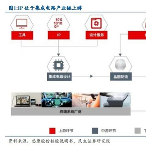 IP 帮助降低芯片开发的难度、缩短芯片的开发周期并提升芯片性能,是集成电路产业 链上游关键环节。半导体 IP(Intellectual Property)指在集成电路设计中,经过验证 的、可重复使用且具备特定功能的集成电路模块,通常由第三方开发。IP 位于集成电路产 业链上游,主要客户是设计厂商。独立 IP 厂商的出现主要源于半导体设计行业的分工。设 计公司无需对芯片的每个细节进行设计,通过购买成熟可靠的 IP 方案,实现某个特定功 能。设计人员以 IP 核为基础进行设计,类似搭积木的开发模式,可大大降低芯片的设计难 度、缩短芯片的设计周期并提升芯片性能。