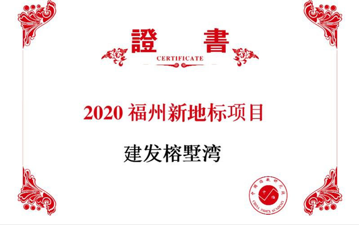 2020年,中指研究院、中国房地产指数系统在总结过去16年“中国建筑新地标”研究经验的基础上,结合中国房地产指数系统百城价格指数研究成果,进一步完善了研究方法体系,通过分析项目在“功能性”、“标识性”两个方面的表现,全面凸显百城建筑新地标的功能特征、文化内涵和收益水平,继续加大对地标建筑内部服务、创新技术等内涵因素的分析,最终形成“2020中国百城建筑新地标”研究成果。其中福州建发·榕墅湾凭借规划理念、服务功能、产品品质、文化内涵等多方面的优异表现,成功入选“2020福州新地标项目”。
