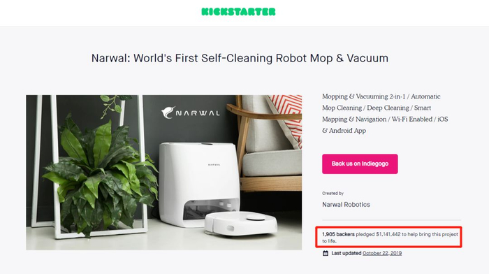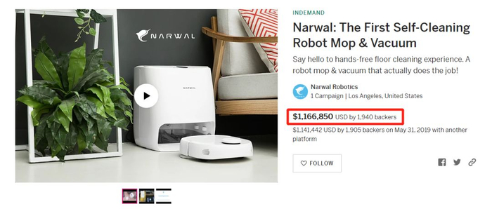 这个扫拖一体机器人,一登陆 kickstarter 就受到外国朋友的无数好评,短短时间内就筹得 114 万+美元,位列扫地机器人众筹榜第一位!
