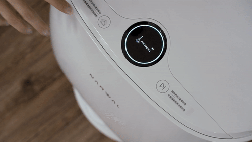 与传统的扫拖一体机器人不同,云鲸带有一个清洁基站,机器人可以在里面完成充电、自动洗抹布等等多项任务,完全不用人手清洁。