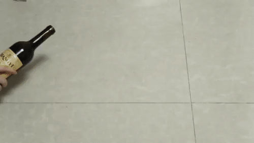 首先把红酒洒在地上,然后用风筒吹干,模拟家里干擦擦不净类型的污渍: