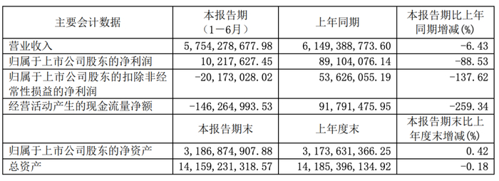 2020年上半年,太极集团实现营业收入57.54亿元,同比下降6.43%;归属净利润为1021.76万元,同比下降88.53%;扣非净利润为-2017.30万元,同比下降137.62%。