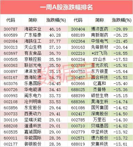 海能实业问鼎一周涨幅榜
