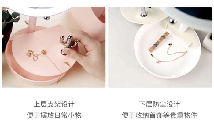 这款同样来自洛斐的晨曦美妆镜,底座兼具储物功能,颜值与实力并存,为你的化妆桌节省空间。