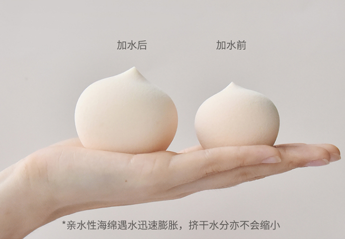 美妆蛋采用亲水性非乳胶海绵(聚氨酯)材质制成,软硬适中,十分Q弹,肤感优秀。