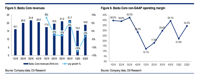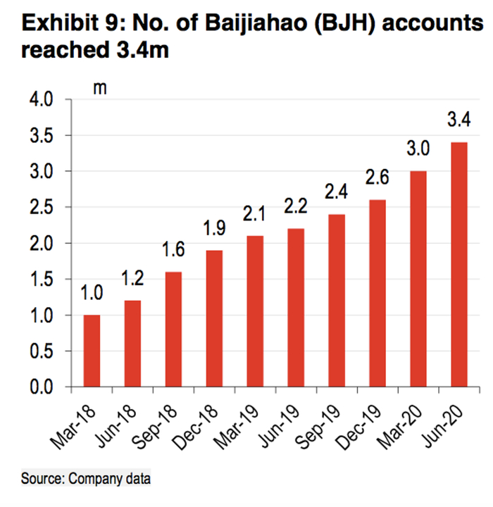 从财报数据来看,百度的上述战略已经颇见成效。2020Q2,百家号内容创作者数量同比增长52%至约340万;百度智能小程序月活跃用户数达3.39亿,同比增长25%,智能小程序的数量达到去年同期的5倍以上;同时,在医疗广告复苏等的推动下,托管页面在百度核心中的收入占比从上季度的20%提升至30%,瑞穗银行(Mizuho)认为这是百度盈利的一个积极指标。