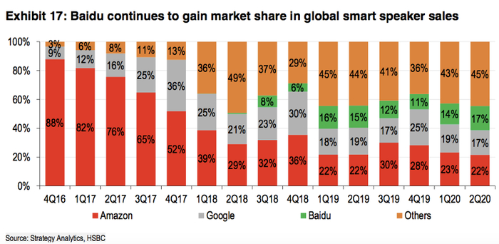 “百度公司在寻求增长的同时,其收入有望转向智能音箱和云。” 瑞士信贷的研究报告认为百度的AI战略为其带来了新的增长。