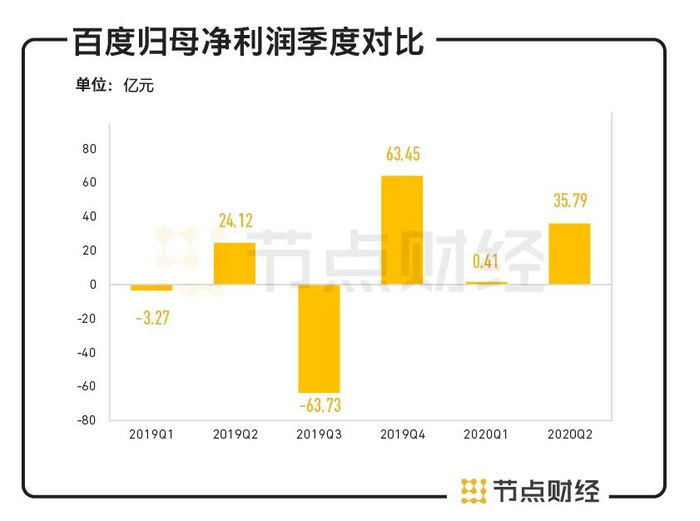 这一切源于百度近日发布的新季度财报。8月14日,百度发布未经审计的2020年第二季度财报显示,该季度公司实现营收约260亿元,环比增长15%,高于此前市场预期的257.5亿元;在美国通用会计准则(GAAP)下,净利润同比增长48%至35.79亿元;非通用会计准则(Non-GAAP)下,净利润同比增长40%至50.82亿元。