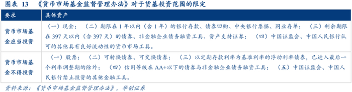 标准化票据作为“货币市场工具”,可能纳入货币基金投资范围适宜货币基金作为投资标的。《标准化票据管理办法》的第四条明确规定“标准化票据属于货币市场工具,中国人民银行依法对标准化票据实施宏观调控和监督管理”;而《货币市场基金监督管理办法》也提及“中国证监会、中国人民银行认可的其他具有良好流动性的货币市场工具”是货基的投资范围;故标准化票据本身属于货币市场工具的分类,纳入货币基金投资范围概率或相对较大;但是,当前发行标准化票据尚无针对产品本身的外部评级,未来外部评级细节有待明确,是否符合货基对于评级的相关要求尚不确定。