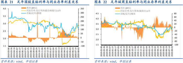 从表外来看,监管前期推动表外资产回归表内,未贴现票据余额持续缩减,截至2020年7月末,未贴现票据余额约4.5万亿,其中主体部分仍是未贴现银票,余额约3.3万亿,未贴现商票余额约1.2万亿。