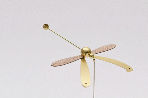 用手指轻轻一碰,金属立杆上的蜻蜓仿佛活了过来,像只小精灵一样翩然起舞。