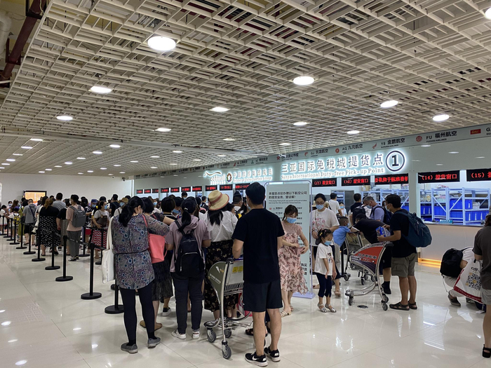 三亚凤凰机场一号免税提货点。(澎湃新闻记者 唐莹莹 图)