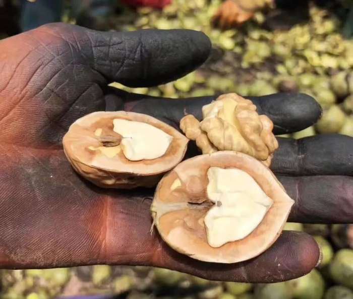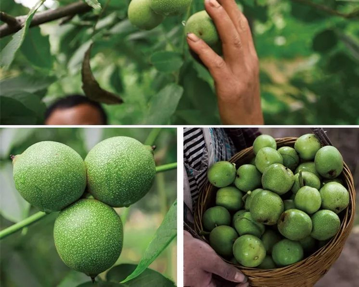 果期历经六个月以上生长很关键,每一颗青皮核桃都必须达到这个采摘标准。这样果肉才会足够饱满成熟、嫩甜多汁~