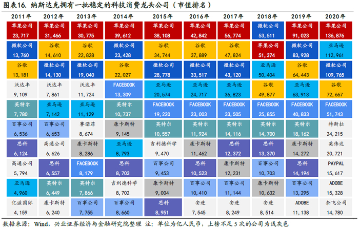 创业板与纳斯达克最大差距在于头部公司:纳斯达克拥有一批市值规模庞大、市场地位稳定、在全球具备竞争优势的核心资产;而创业板开板至今,头部公司频繁迭代、目前总体规模相对较小,各细分领域核心资产正逐步从资本市场脱颖而出,成为“非卖品”。