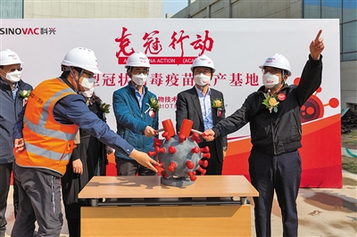 3月29日,科兴大兴基地新冠疫苗车间开工仪式。本版图片/受访者供图