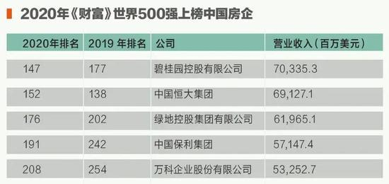 今年500强中的5家房企,全部来自于中国,分别为碧桂园、中国恒大、绿地控股、保利集团、万科,其中,碧桂园以第147名位居中国以及全球房企第一。