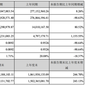 半年报称,2020年上半年净利润较去年同期大幅下降,主要原因是上年同期公司资产置换产生的投资收益对净利润影响2.62亿元。