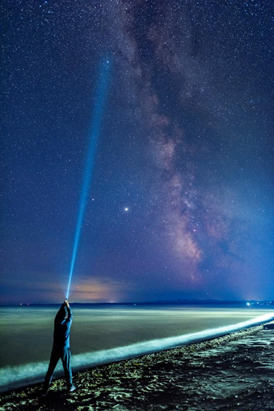 8月21日晚,农历七月初三,黑龙江鸡西兴凯湖天气晴好,星空闪耀。一个人在湖边用手电寻找空中的织女星。视觉中国供图