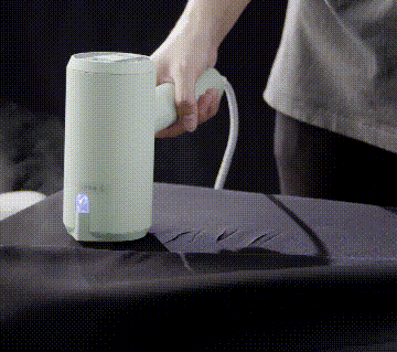 而且,它还可以直接当电熨斗来用。但不用熨烫板,只要把衣服平放在桌面上,就能用它给衣服定型,非常方便。