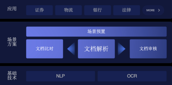 TextMind底层基于OCR、NLP技术,以文档解析为核心能力,具备文档比对、审核能力。