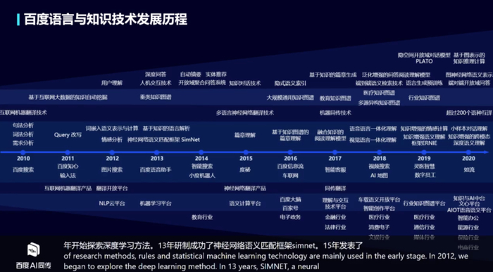 由此也可见百度在语言与知识技术领域开源开放的态度,其十年技术成果,都在源源不断通过平台化产品对外输出,在互联网、金融、医疗、教育等诸多领域发挥作用。