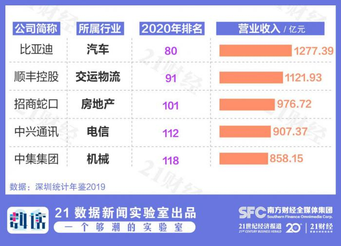 按照财富中国500强统计,名列前茅且有潜力的深圳企业包括比亚迪、顺丰控股、招商蛇口、中兴通讯、中集集团。2020年,入围世界500强榜单门槛的营业收入达254亿美元,而上述五家企业的营业收入(按8月22日汇率计算)分别为185亿美元、162亿美元、141亿美元、131亿美元、124亿美元,仍存在不小的差距。
