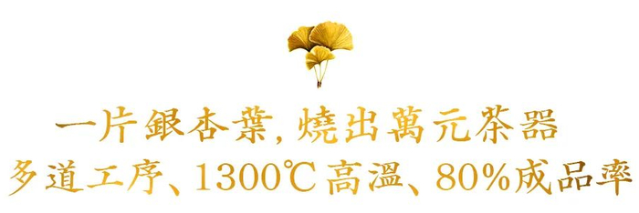 用手抚摸,你会发现银杏叶毫无凸起,金黄的叶片与根根清晰的叶脉,已然与茶器完美融为一体!