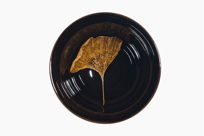 这小小的一个天目盏,连银杏叶刚入盏的灵动之美,也能完美呈现出来,极具神韵。