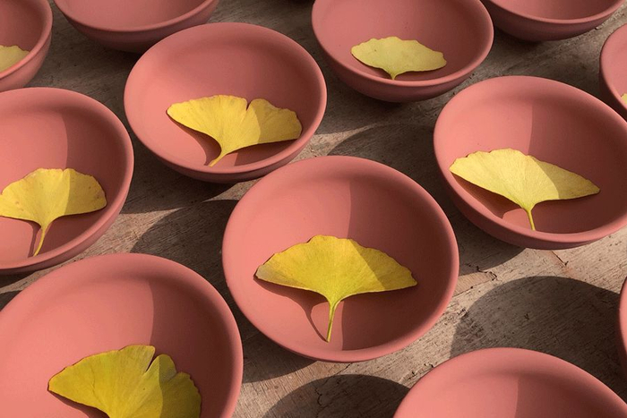 经过多次试烧、比对,他发现很多银杏叶很难烧出从禅寺带回来的老银杏叶的质感。多番遴选,团队最后选择了临近景德镇的浙江天目山的老银杏。