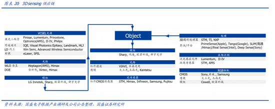 通过对已经上市的主流 3D 摄像头产品进行拆解分析,3D 摄像头产业链可以被分为: