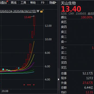 创业板注册制开市前,天山生物连续三天涨停,开市后,天生生物再次连续三天顶格涨停,但是由于涨跌幅已从10%提升至20%,累计涨幅已极为可观。