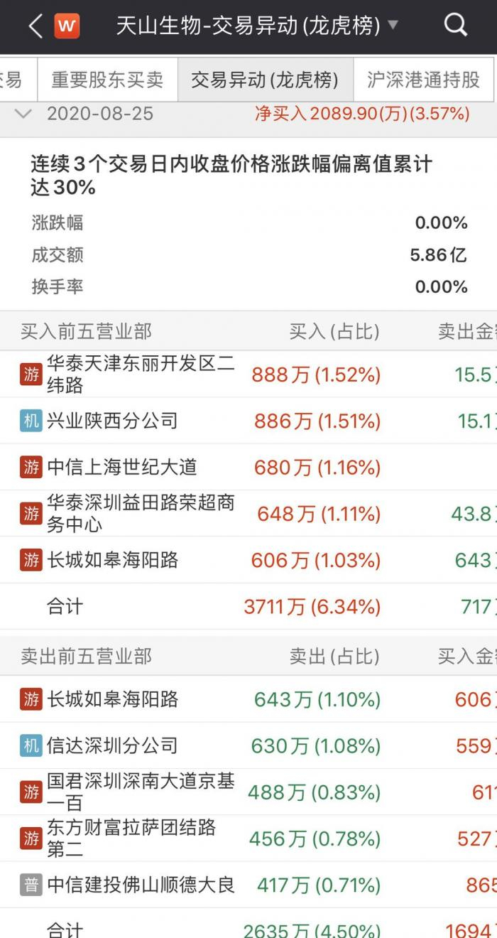 进一步追踪到资金层面也可看出,近期主要是游资在集中炒作天山生物,有数据可查的8月24日、25日均是如此。