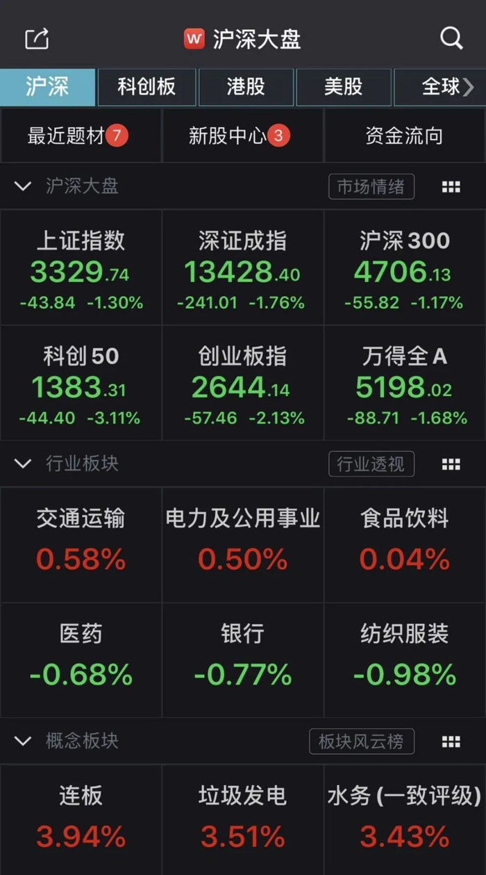 8月26日,两市回调,截至收盘,上证指数下跌1.30%,深证成指下跌1.76%,创业板指下跌2.13%。两市超3200只个股下跌,有31只个股跌停。题材板块多数表现低迷,环保板块逆市上涨,多只环保股涨停。