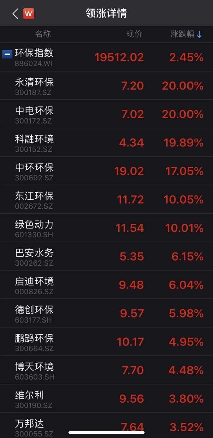 环保板块逆市出现涨停潮