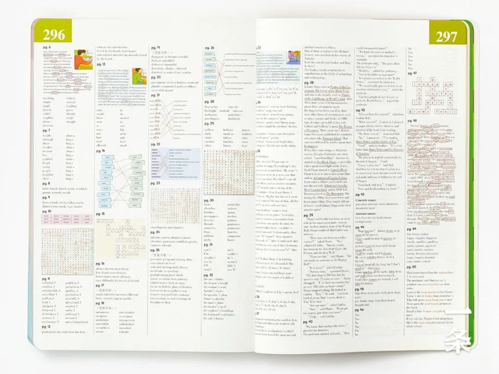 从侧边能看出书页的颜色,花花绿绿各不相同,其实是为了区分各部分的章节,便于直接翻书检索。