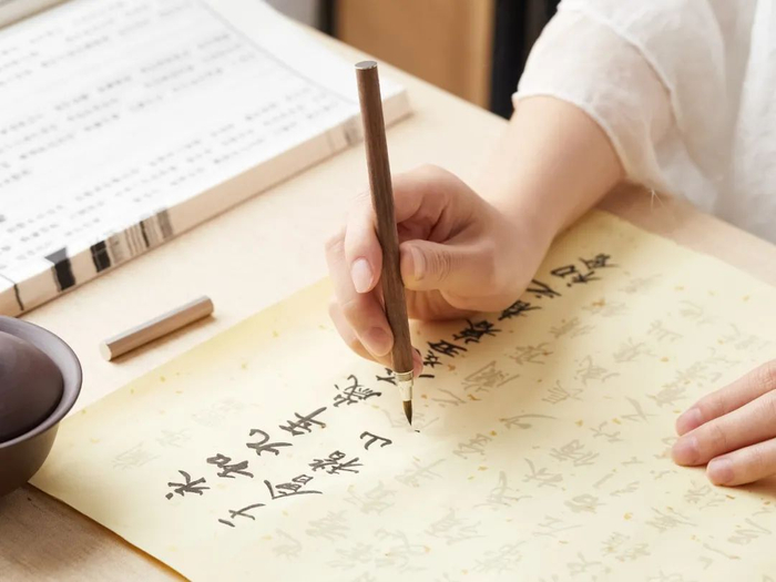 类似普通铅笔的手势,也是书法史上历史悠久的执笔方法,尤其适宜小楷书写。