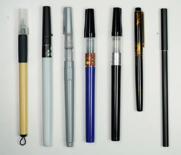 市面上部分日式自来水毛笔和小管(最右)对比图