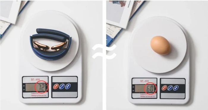 整机的重量,就只有 72 g 。这是什么概念呢?一个普通尺寸的鸡蛋,就差不多 60 g 。