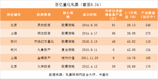 时间线上,2014年,中金销售交易部副总蔡枚杰创业,成立灵均投资;同年,华尔街的裘慧明回国,创立明汯投资;2015年,包括徐进在内的3个浙大计算机系的同学从IT转向量化投资,成立了九章资产(幻方量化),这些公司目前都成了叱咤风云的百亿量化私募。除此之外,7月新晋百亿私募宁波宁聚也是量化起家。