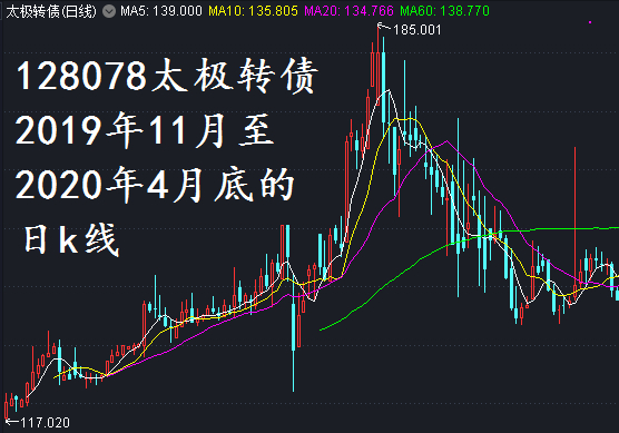 下图是2019年11月8日太极转债正式上市交易后的日k线,截止到2020年4月底。