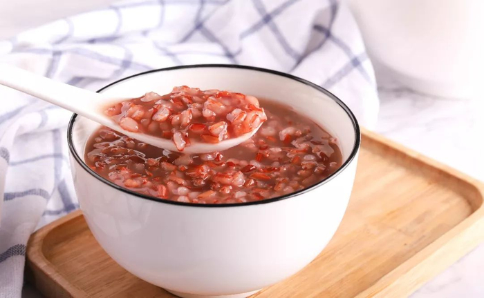 不少粉丝担心大米的上色问题,小编特地浸泡后是海红米本身颜色,大家可放心食用。