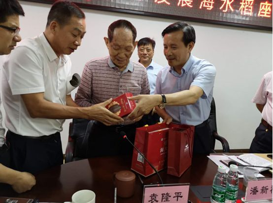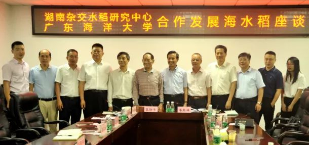 在湖南杂交水稻研究中心与广东海洋大学合作发展海水稻座谈会上,袁隆平院士首先肯定了广东海洋大学在海水稻种质资源保护和研发方面的重要贡献,勉励广东海洋大学作物学科海水稻团队将珍贵的海水稻种质资源和杂交育种技术结合起来,双方深度合作,为海水稻优质高产育种,为盐碱地改良利用、国家粮食安全和人民健康发事业再创佳绩。